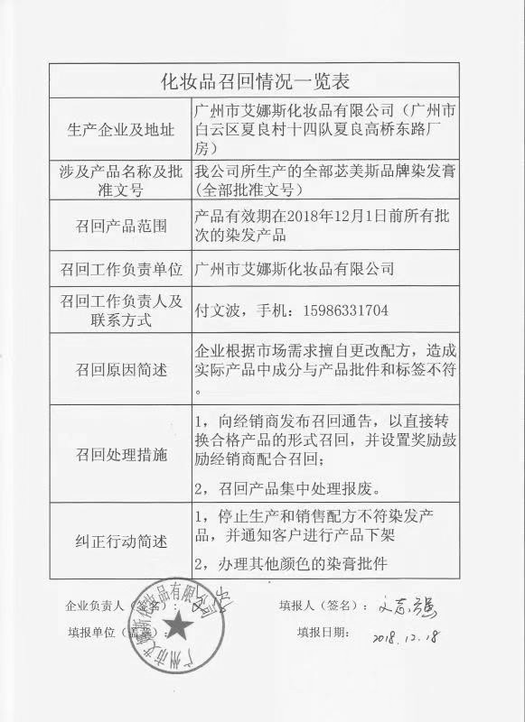 附件:《化妆品召回情况一览表》